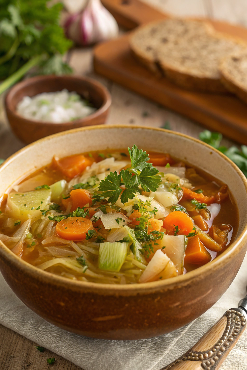 Bread options: Whole grain crackers or a slice of sprouted grain bread complement the soup without overwhelming its light nature.