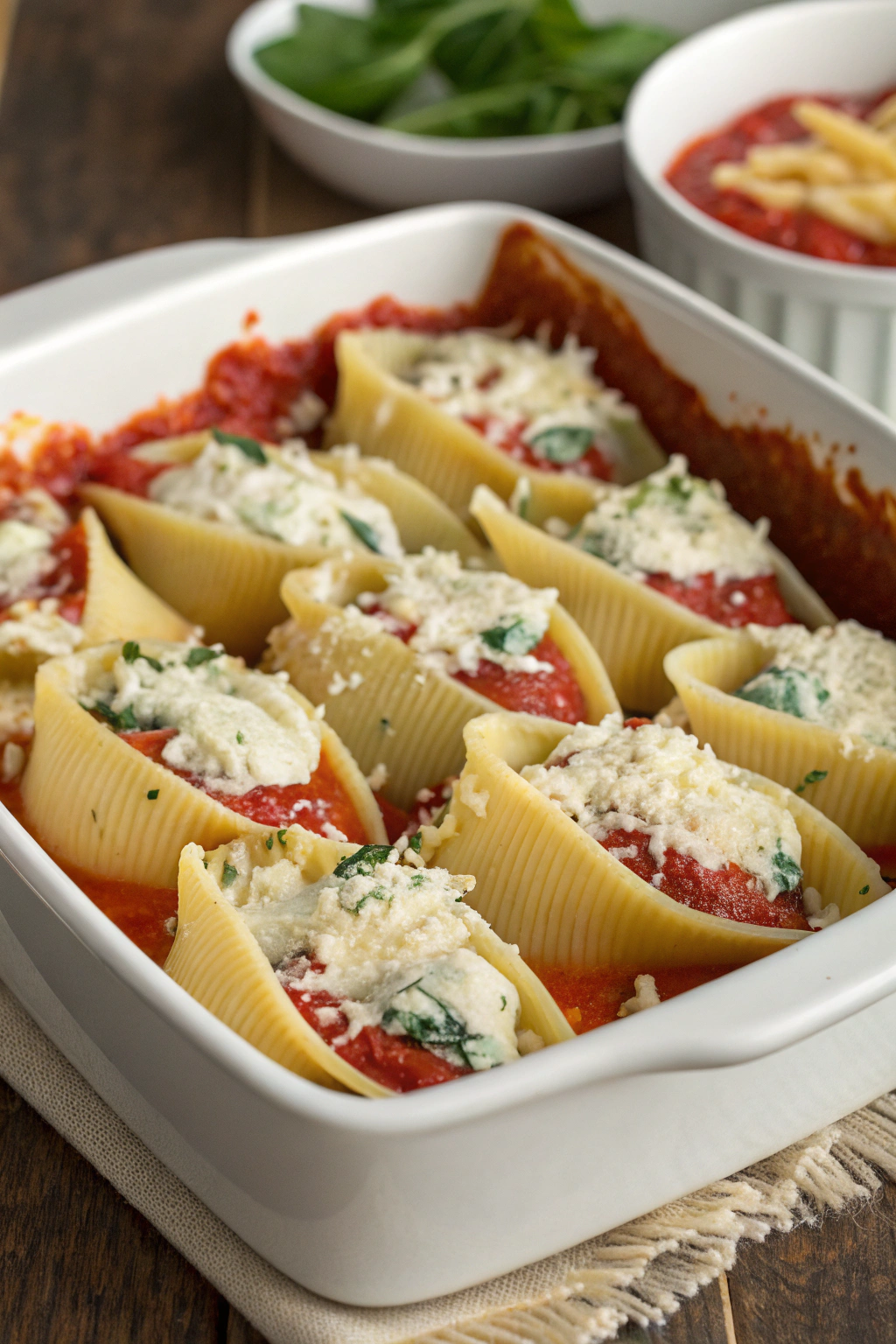 - Stuffing the Shells: Don’t be shy with the filling! Pack the ricotta mixture into each shell generously—this is the star of the dish. If you want a smoother filling, you can blend the ricotta mixture in a food processor for a creamy, lump-free texture. Make sure to stuff the shells when they’re still warm enough to handle, but not piping hot.