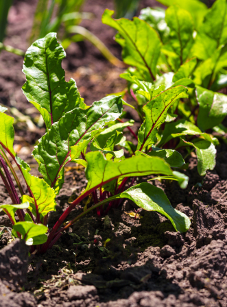 Beets are versatile root vegetables that can be harvested young for tender greens and small roots.